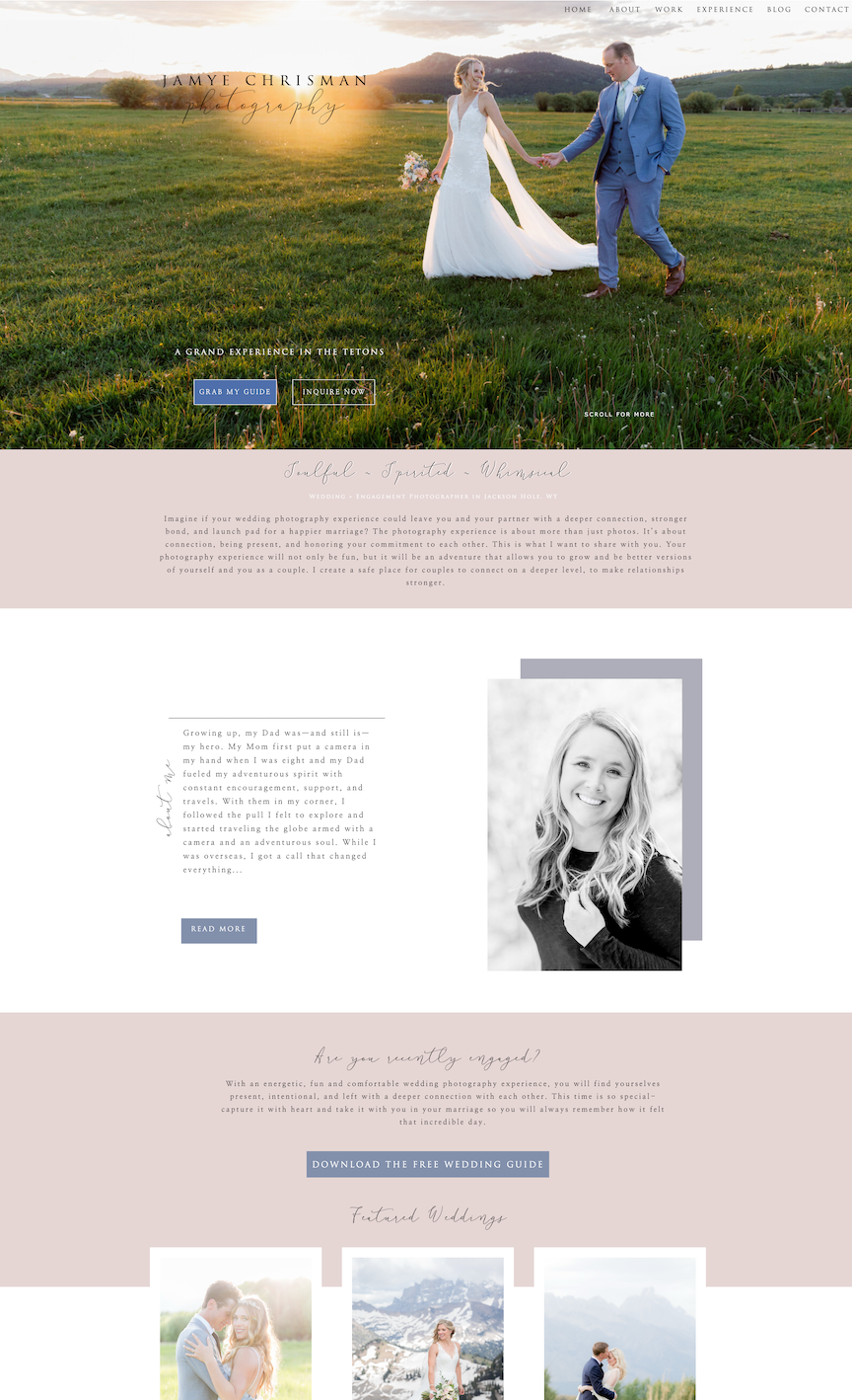 "I absolutely love my homepage! It's exactly what I was going for and feels like "me". You made the whole experience easy and painless. You were excited, knew exactly what you needed from me, and were super responsive. I wanted a look for my site that didn't really fit any of the templates, so you built it from scratch and I am so grateful for that!